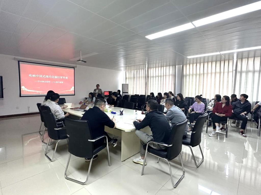 为全面准确把握党的二十大精神的核心要义,深入贯彻学习党的二十大精神,落实主题教育“学思想、强党性、重实践、建新功”的总要求, 4月18日下午,艺术与设计学院党总支书记耿亚杰以“吹响中国式现代化强行军号角”为题,为全体在校党员师生、教职工讲“学习宣传贯彻党的二十大精神”专题党课。