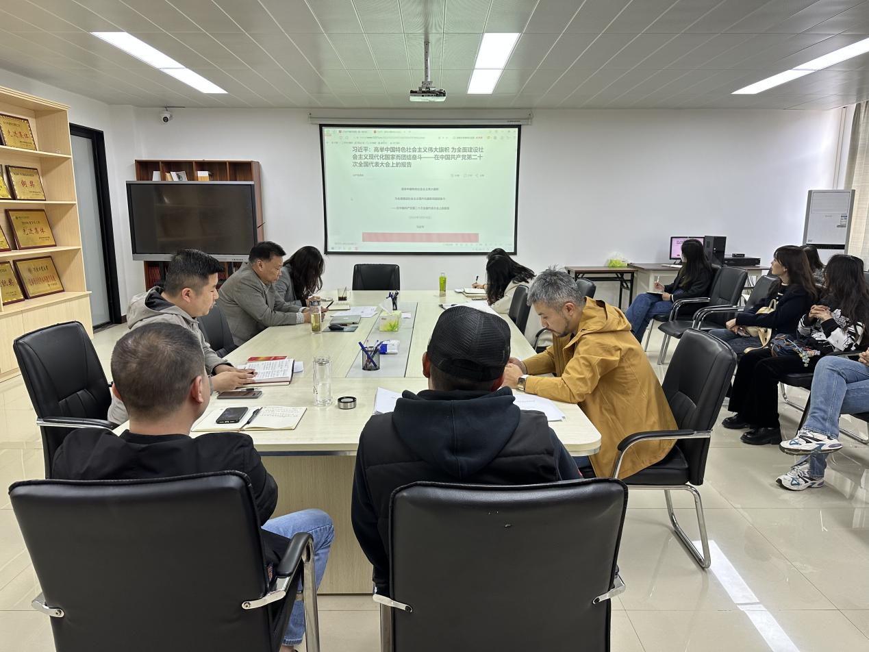 日下午,艺术与设计学院组织党员教师开展主题教育政治理论学习。学院党总支副书记赵巍领学《习近平著作选读》中的篇目《高举中国特色社会主义伟大旗帜,为全面建设社会主义现代化国家而团结奋斗》的内容。