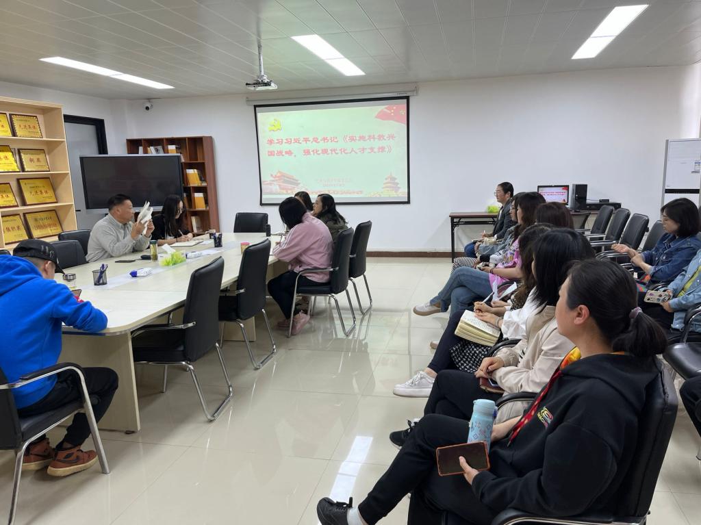 5月9日下午,艺术与设计学院党总支组织党员教师开展主题教育政治理论学习。院长华雷领学《习近平新时代中国特色社会主义思想专题摘编》中的篇目《实施科教兴国战略,强化现代化人才支撑》的内容。