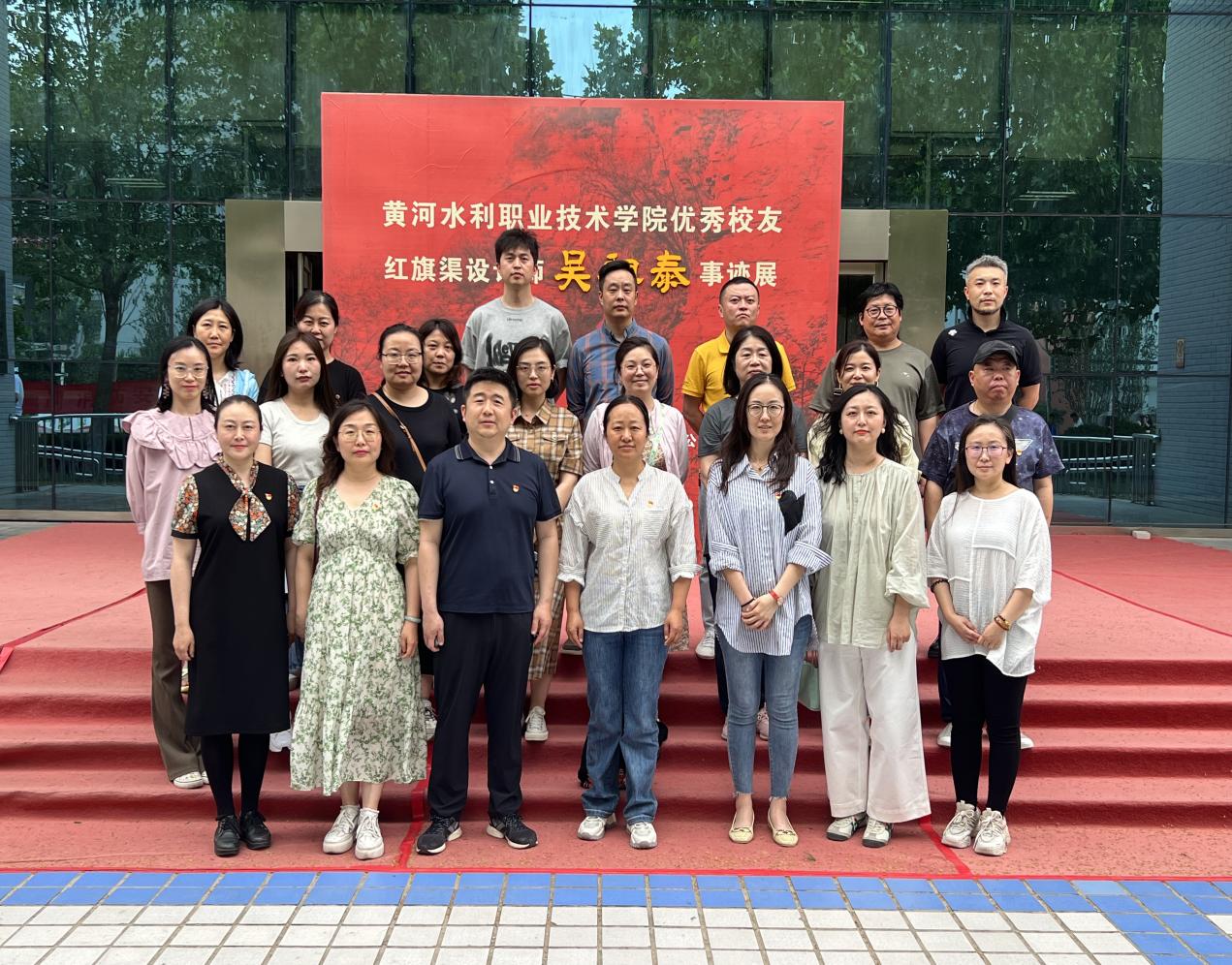 为进一步推动学习习近平新时代中国特色社会主义思想主题教育走深走实,引导广大教师深入贯彻落实党的二十大精神,传承和弘扬“自力更生、艰苦创业、团结协作、无私奉献”的红旗渠精神,5月16日,艺术与设计学院党总支组织全体党员、教师到学生活动中心观摩学习“黄河水利职业技术学院优秀校友红旗渠设计师吴祖泰事迹展”,开展主题党日活动。本次活动由教工、学生艺术设计支部负责人周倩、李思荟领学。