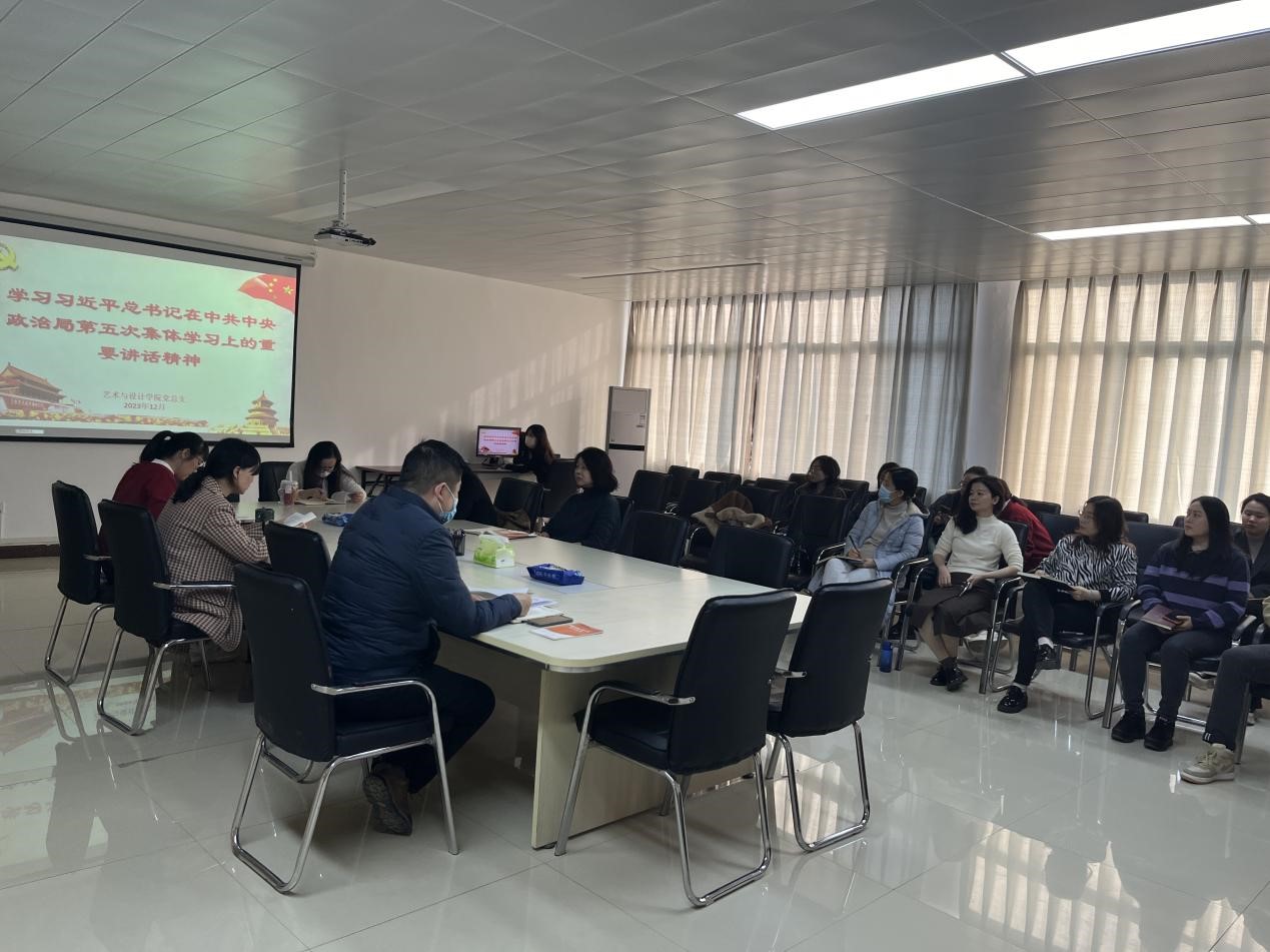为深入学习领会习近平总书记关于加强和改进民族工作的重要思想,进一步铸牢中华民族共同体意识,扎实做好民族团结进步教育工作,12月5日下午,艺术与设计学院党总支在党员活动室SY5516开展铸牢中华民族共同体意识专题学习,党总支副书记赵巍领学,学院全体教师参加。