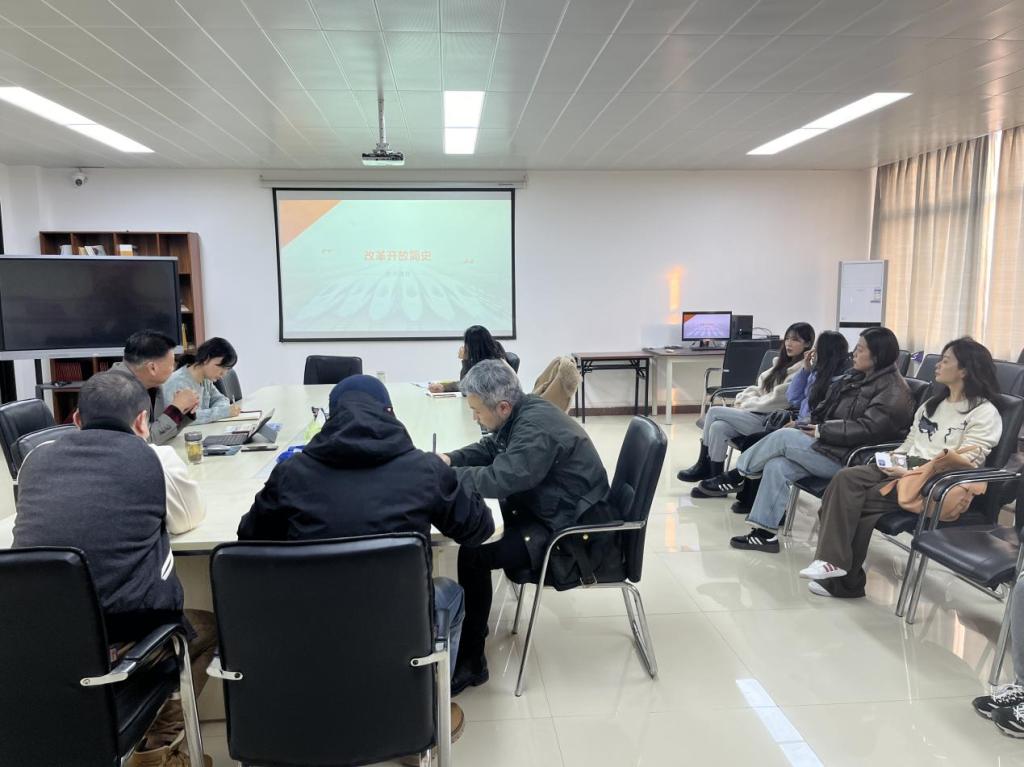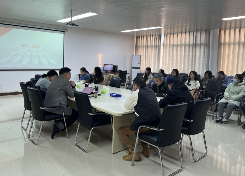 12月26日下午,艺术与设计学院党总支组织党员教师学习党中央关于改革开放45周年纪念大会会议精神,党总支书记华雷领学。