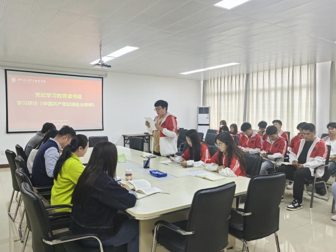 学生艺术设计支部书记李思荟讲解了本次学习纪律处分条例的重要性和必要性,着重强调了政治纪律和政治规矩以及学生党员所要起到的模范带头作用。党总支副书记许宗乐领学了《中国共产党纪律处分条例》主要内容,要求同志们应以此条例对自身进行约束,要深入学习贯彻新修订的纪律处分条例,坚守政治纪律的高压线、组织纪律的红线、廉洁纪律的底线、生活纪律的防线,自觉做遵规守纪的明白人。预备党员赵玉龙、任甜甜、周佳宣同学分享了自己的学习心得,强调作为一名预备党员今后要以党纪条例为准则,言行一致,严于律己。