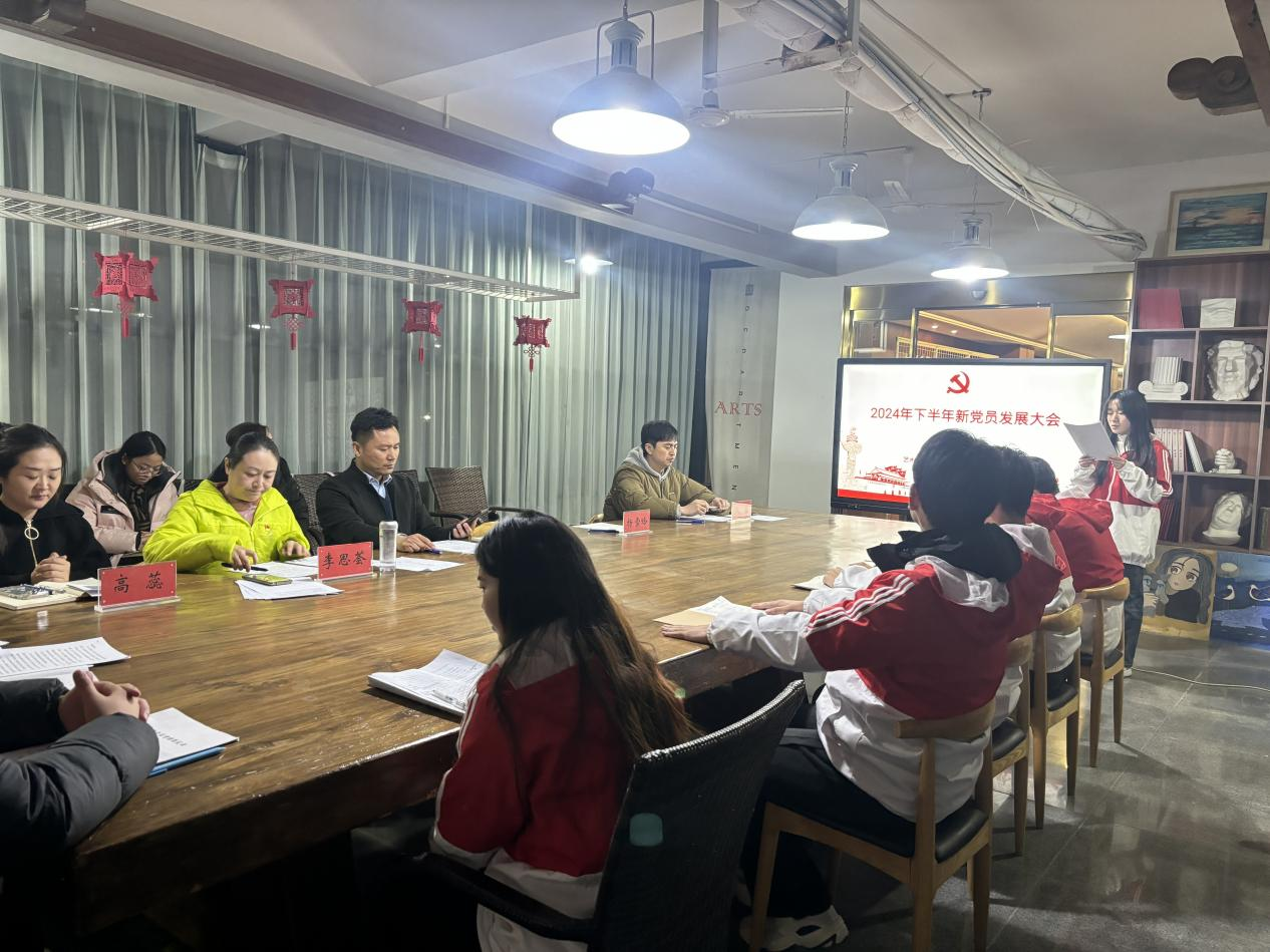 为夯实基层党组织根基,确保党员队伍生机蓬勃,为党组织源源不断地注入新鲜血液,2024年12月6日,学生艺术设计支部召开2024年下半年新党员发展大会。会议由学生艺术设计支部书记李思荟主持,党总支副书记许宗乐、组织员杨雪吟、学生艺术设计支部组织委员倪磊、党员教师高蕊以及 7 名预备党员和发展对象等学生参会。