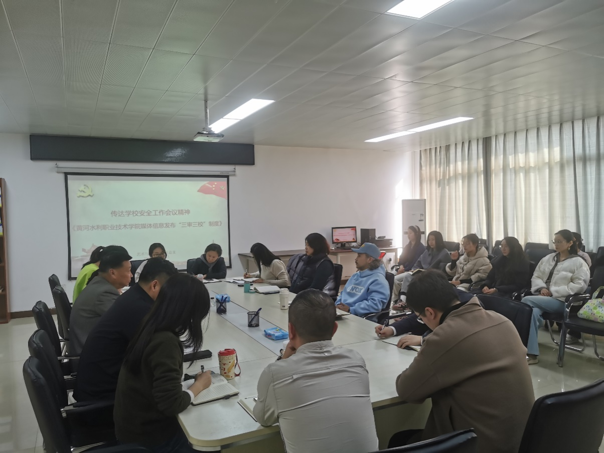 2月25日下午,艺术与设计学院在SY5516召开政治理论专题学习会,集中学习《全省安全稳定工作、教育工作会议精神》,《黄河水利职业技术学院媒体信息发布“三审三校”制度》,并传达学校安全工作会议精神,全体教师参加会议,党总支书记华雷领学。