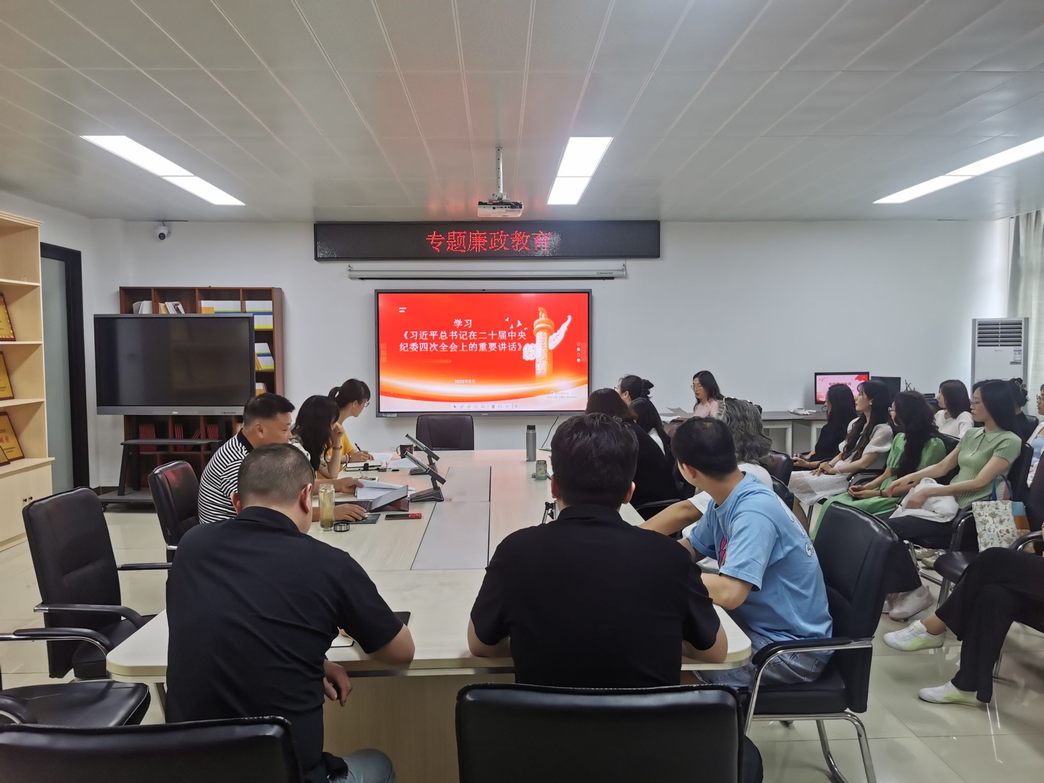 为贯彻落实《黄河水院2025年上半年政治理论学习及思想道德教育计划》学习要求,进一步提升教职工理论学习的制度化和规范化水平和政治理论素养。5月20日,艺术与设计学院(艺术教育中心)组织教职工专题学习习近平总书记在二十届中央纪委四次全会上的重要讲话、新修订《中国共产党纪律处分条例》、新修订《中国共产党巡视工作条例》《黄河水利职业技术学院重点领域关键环节监督工作实施办法》。