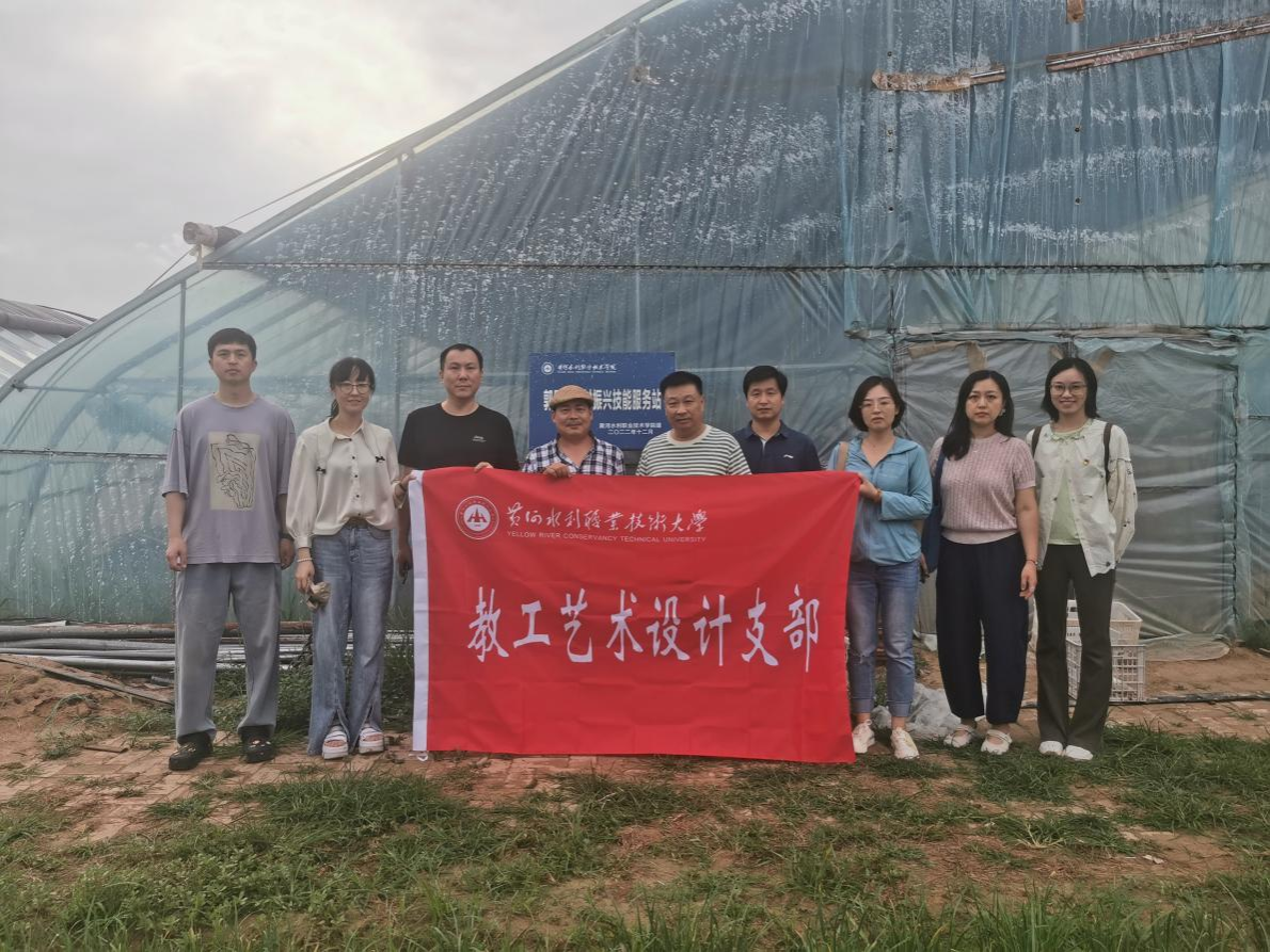 为深入践行党的二十大精神,扎实推进乡村振兴战略,2025年6月26日下午,艺术与设计学院教工艺术设计支部赴郭景村刘店乡开展“技术下乡解民忧,产业赋能助振兴”—践行党的二十大精神乡村振兴助农党日活动,通过技术帮扶、消费助农等形式,为当地农户送政策、送技术、送服务,以实际行动助力农业农村现代化。同时,支部党员教师们实地调研了学校援建的郭景村村史馆以及蔬菜温室大棚,并为驻村工作队送去慰问品。