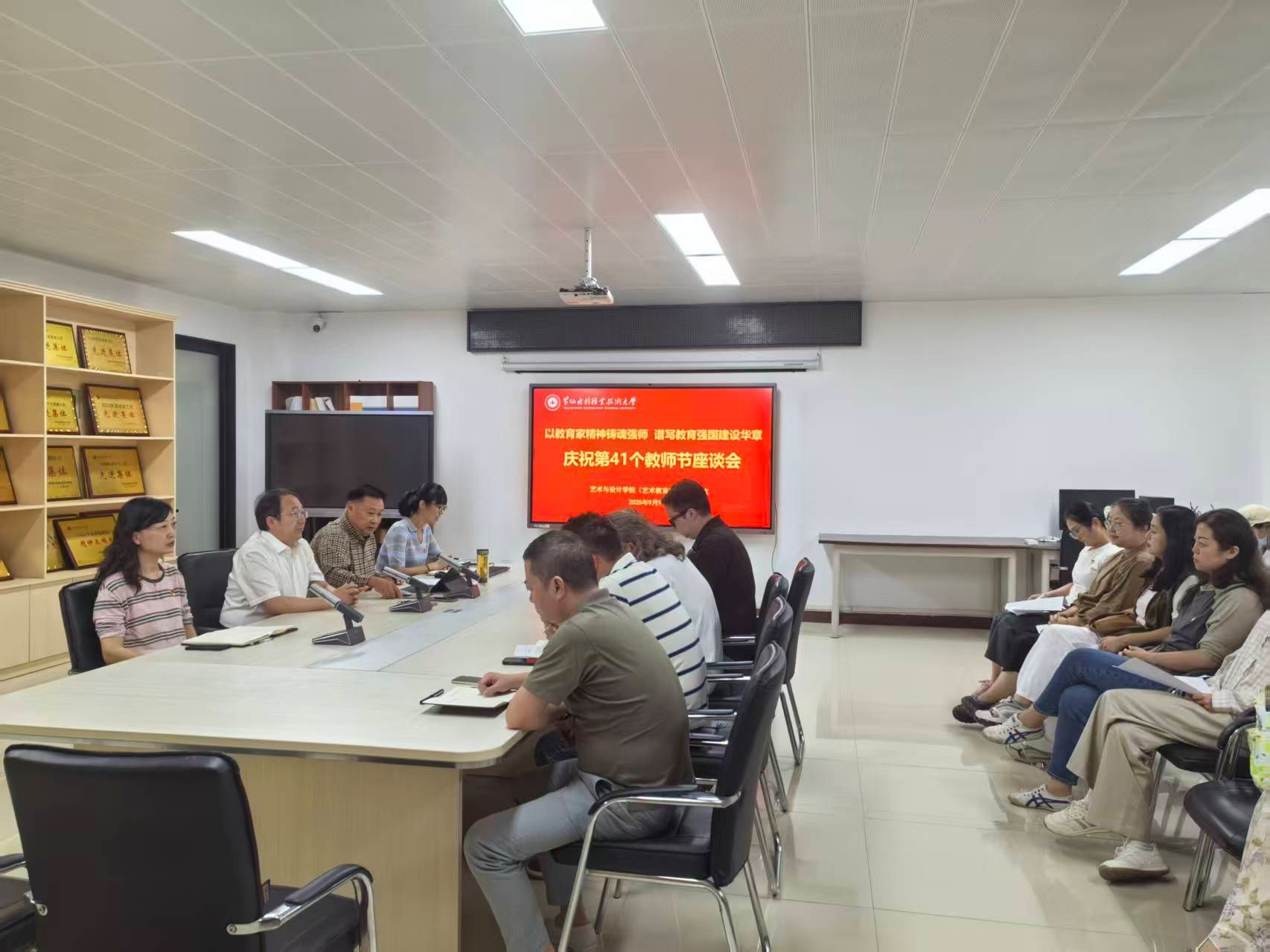 9月9日下午,在第41个教师节到来之际,周志琦(副校长)到艺术与设计学院(艺术教育中心)看望工作在一线的教师,并参加以“以教育家精神铸魂强师,谱写教育强国建设华章”为主题的教师座谈会。