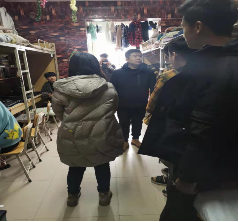 为保障我院学生拥有一个良好的宿舍安全环境,树立我院师生安全意识,2019年11月21日上午,我院党总支书记耿亚杰、副书记赵巍组织班主任杨雪吟、李含笑老师与学生维权、女工、安全部门深入学生宿舍10号、15号楼,开展冬季宿舍文明教育与安全隐患排查工作。
