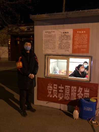 家住焦作的他在两年入伍期间很少有机会回家,退伍时服从部队安排,为国家站岗直至国庆结束。本想着复原后利用这个新年可以好好在家陪伴年迈的爷爷奶奶,但疫情突如其来,他义无反顾地主动向村委会请战,和村里的党员干部一起投入到疫情防控工作中。赵玎玎每天进行防疫宣传、杀菌消毒、为村民测量体温,把好住地的第一道防线,并主动要求值夜班。他说:“这些工作虽然简单普通,但保卫的是一方水土,一方情,我要守好这道防线!作为一名入党积极分子,我也要用自己的实际行动践行对党的初心,用自己的责任与担当,守护美好家园。”