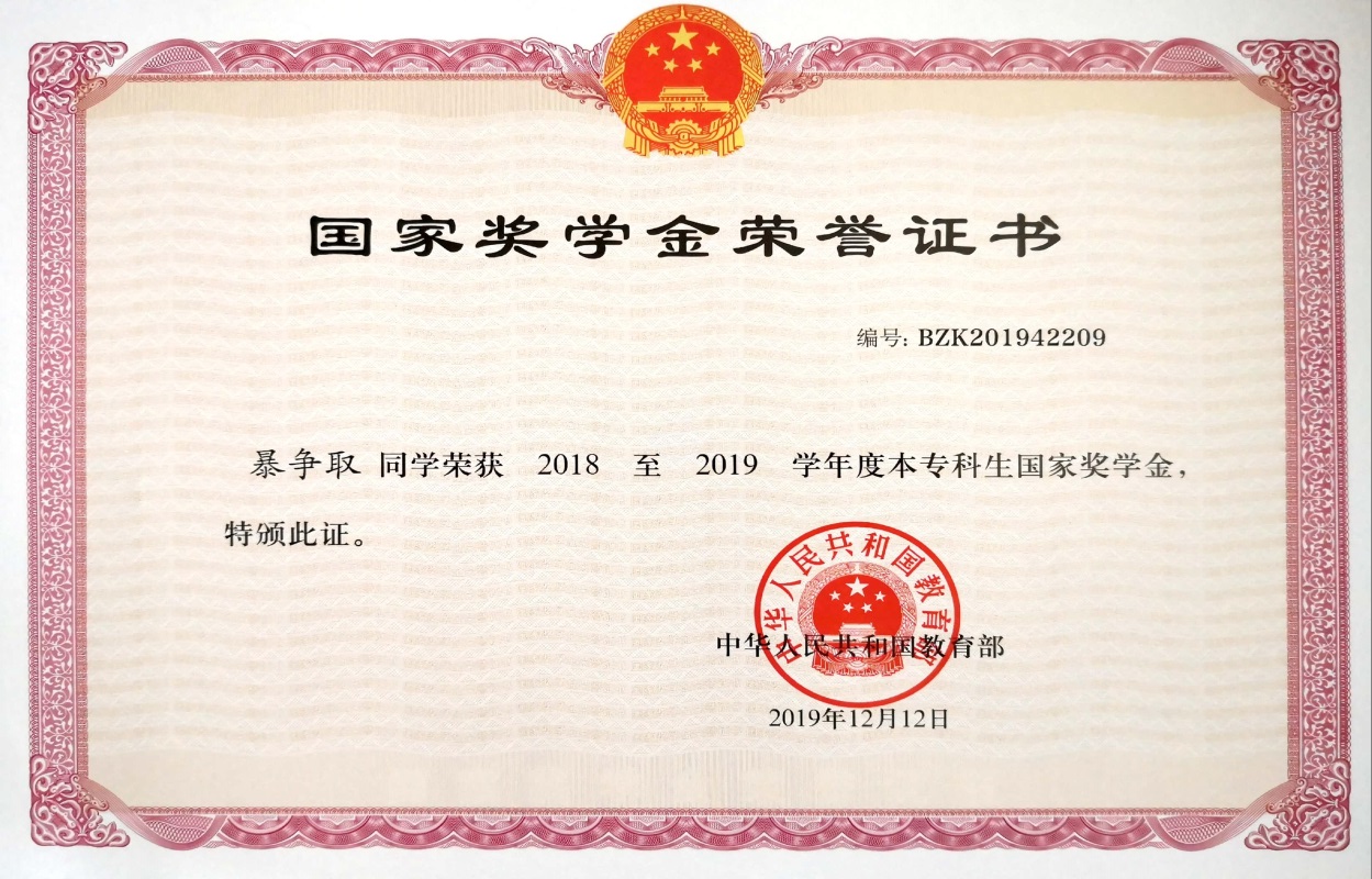 近日,喜报频传,我院两名学生荣获2018-2019学年国家奖学金。他们分别是:环境艺术设计1702班于援超、环境艺术设计1705班暴争取。两名学生在校期间学习成绩优异、品学兼优,均为中共预备党员。国家奖学金是由中央政府出资设立,用于奖励高校全日制本专科学生中特别优秀的学生,奖励标准为每人每年8000元,是目前我国高校学生的最高奖项。