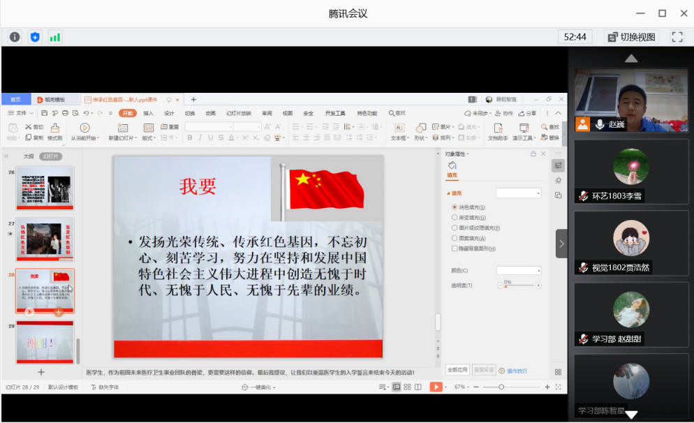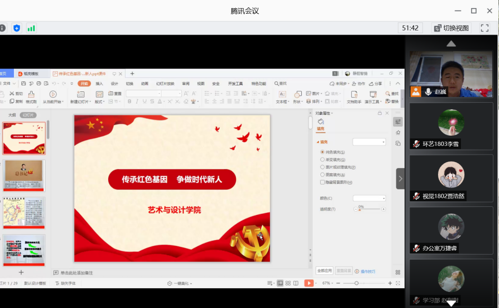 7月20日晚,艺术与设计学院开展“传承红色基因,争做时代新人”爱国主义教育讲座,本次讲座由艺术与设计学院全体班团学生干部参加,宣讲人为艺术与设计学院党总支副书记赵巍。