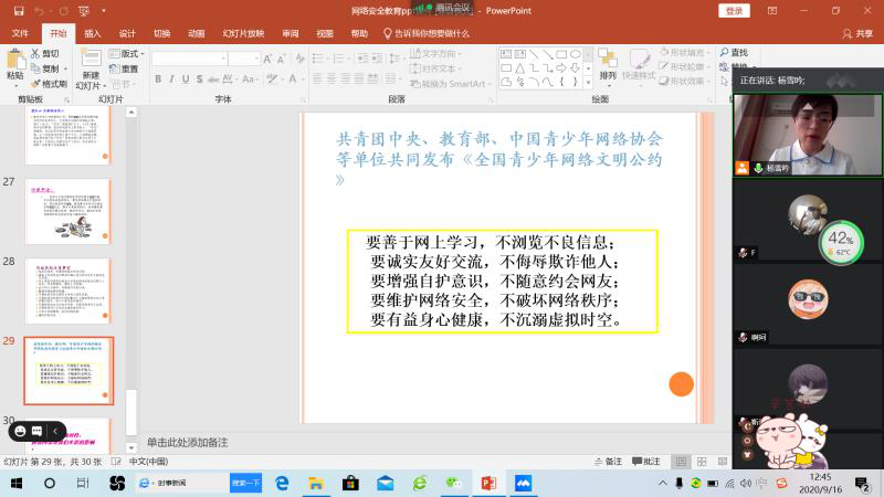 9月15日,艺术与设计学院组织开展“2020年国家网络安全宣传周校园日”活动。此次活动采取线上与线下相结合的方式,由各年级班主任组织召开以网络安全的主题班会,18级19级全体学生参与。