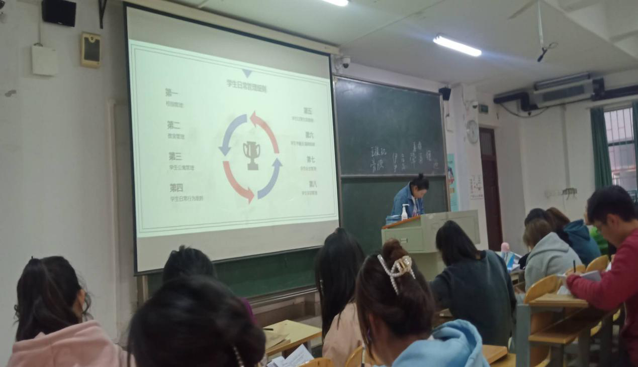 2020年11月2日下午,在教学楼6202教室开展了新生《学生手册》学习。会议由辅导员周洪军以及2020级全体学生参与。