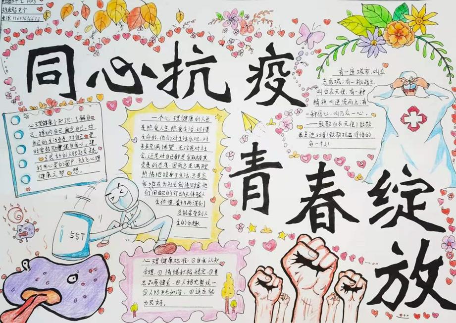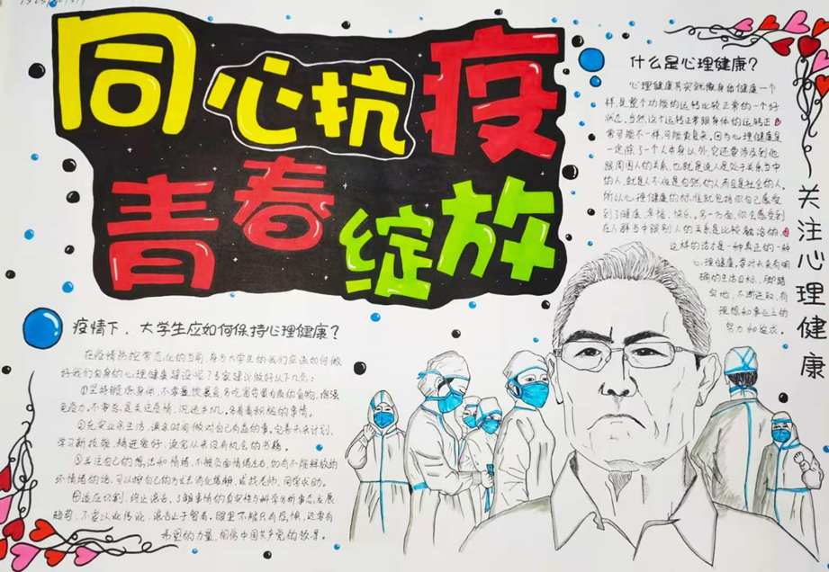 我院学生通过学习心理健康方面的知识和积极向上的内容,突出了‘同心抗“疫”、青春绽放’的主题,共征集到手抄报71张,推荐优秀作品36张到学校参与评选。本次活动开展具有心理教育和心灵启发的作用,同学们能够通过此次活动的开展,解决学习困难,改善人际关系,以更加积极理性的心态对待接下来的大学生涯。