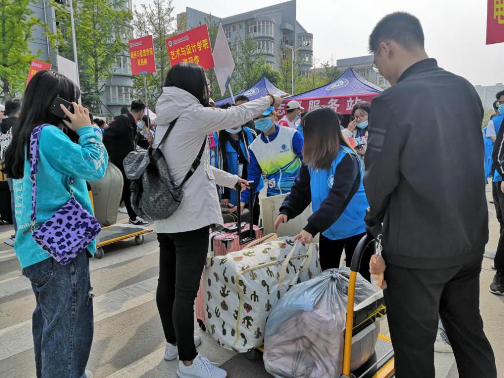 在支部教工党员带领下,由学生党员、入党积极分子所组成的迎新志愿服务队为2020级的新生们提供最真挚、最热情的服务,大家化身为勤劳的“搬运工”,让新生感受到党员同志无私奉献的志愿服务精神。