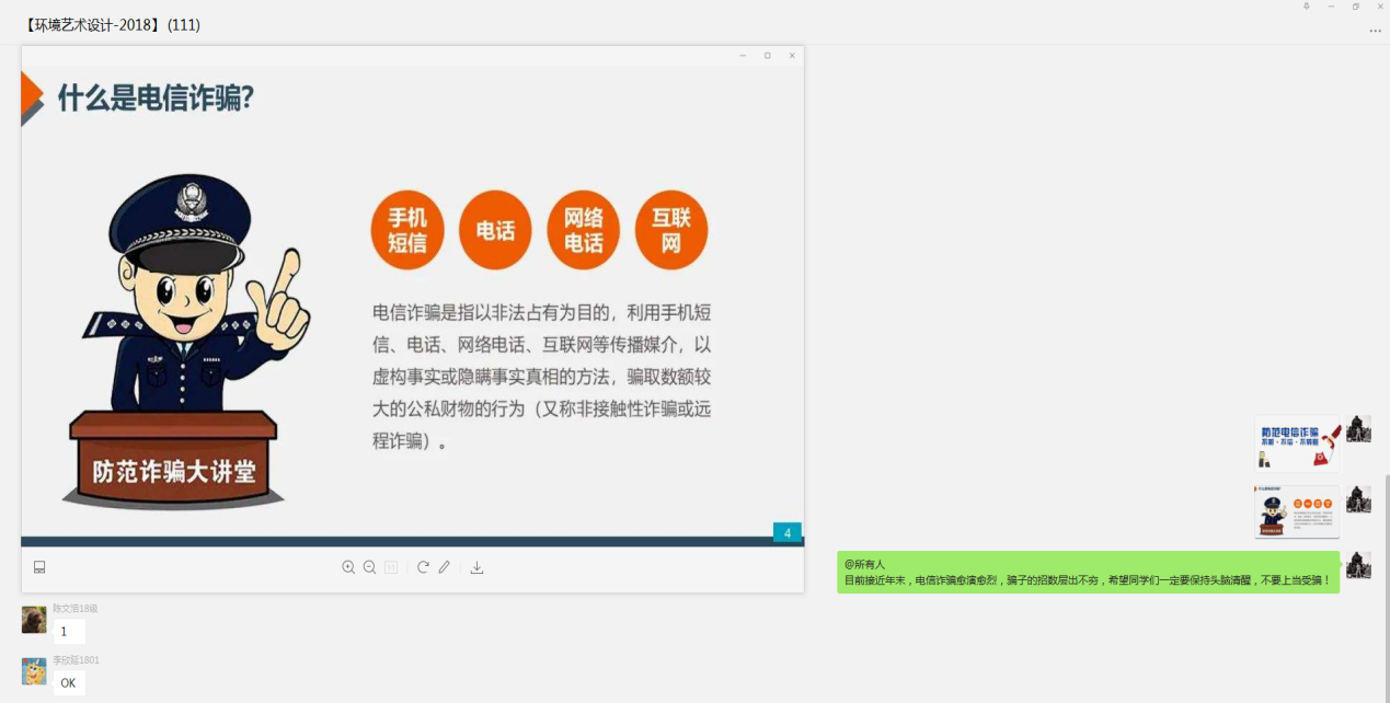 班主任杨雪吟召开预防电信诈骗主题班会