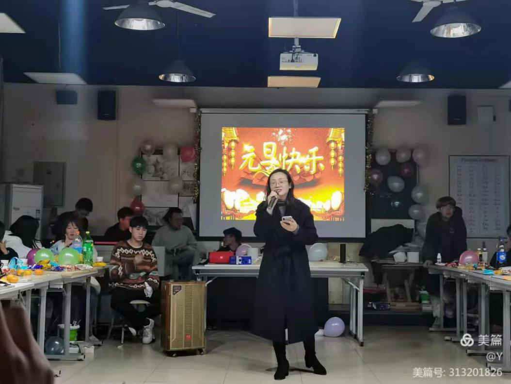 辅导员周洪军老师为本次活动致辞,他对过去的2020年做了总结,对刚刚到来的2021年提出新的希望并为同学们表演了平日里难得一见的京剧演唱,令现场观众大饱耳福。特邀嘉宾张嫚老师也为大家带来了精彩演唱,美妙的歌声使同学们在寒寒冬日里,内心涌出一股暖意。
