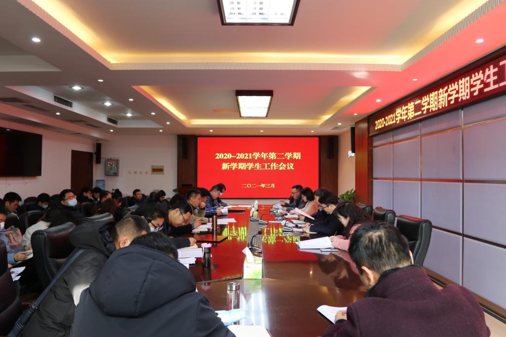 33日上午,学校在行政楼二楼会议室召开了2020-2021学年第二学期新学期学生工作会议,学生工作部、校团委各部门科室负责人、各二级学院党总支副书记、分团委书记参加会议。