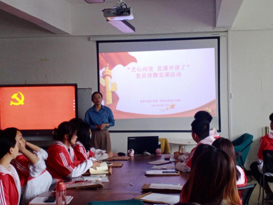 为深入了解和学习党的奋斗历程,培养学生爱党、爱国、爱社会主义的朴素情感。艺术与设计学院学生艺术设计支部于5月11日下午在实训楼SY5608举行“艺心向党 全员开讲”党员讲微党课活动。本次活动由学生艺术设计支部宣传委员倪磊主持,支部全体党员及2021年上半年发展对象参加本次活动。