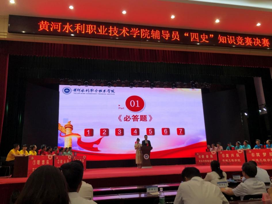历时一个月,最终在6月7日,大学生活动中心一楼举办黄河水利职业技术学院辅导员“四史”知识竞赛决赛。“四史”知识竞赛决赛分为必答题、抢答题和风险题三个环节,经过激烈角逐,我院副书记赵巍,带领辅导员杨雪吟、李含笑老师组成的理想队最终获得比赛二等奖。