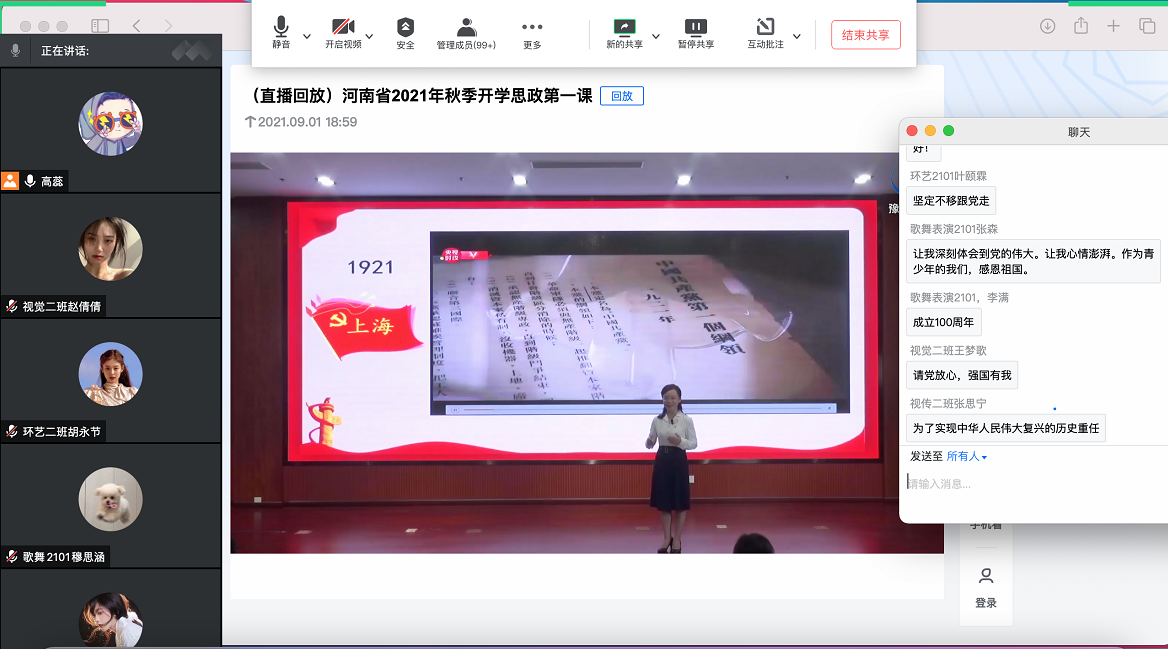 图一:辅导员高蕊带领新生进行“开学第一课”学习