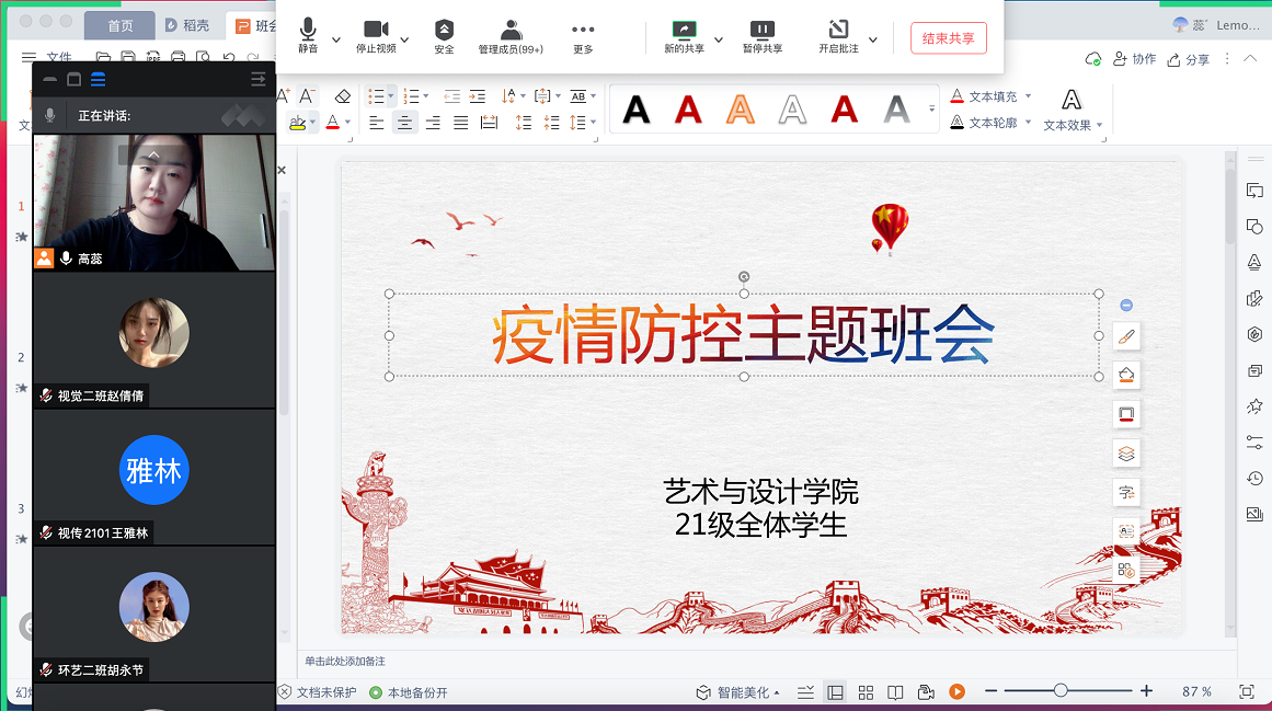 为做好2021级新生入学教育,加快帮助新生适应大学学习生活环境,提升大学生综合素质,2021年9月13日—2021年9月18日艺术与设计学院组织新生开展线上入学教育。