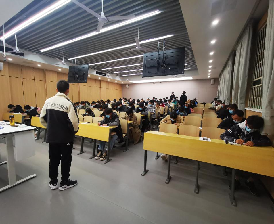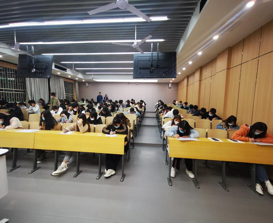 2021年10月19日晚,艺术与设计学院组织21级新生在JX2101、JX2103进行学生手册考试。辅导员高蕊和辅导员助理监考,全体21级学生参加。