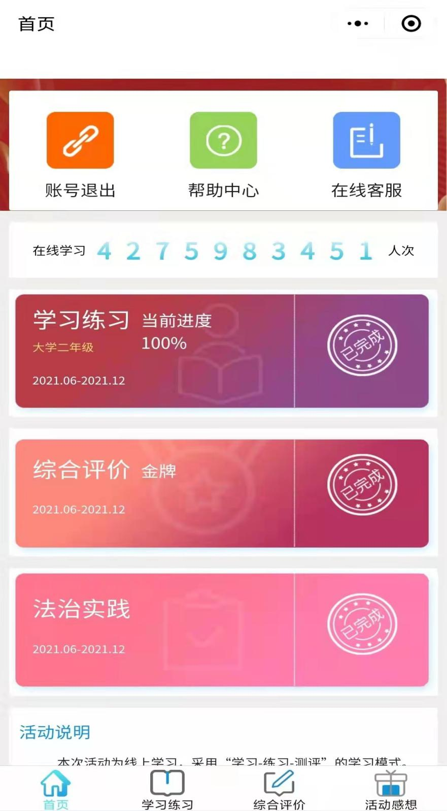活动期间,同学们积极参加,围绕宪法知识展开线下学习和线上竞赛,让同学们知晓设立国家宪法日的目的,不仅是纪念中华人民共和国宪法的诞生,更重要的是让学生们懂得治国之要,奉法则强!法治的根基在人民,法治建设需要全社会共同参与,只有全体人民信仰法治、厉行法治,国家和社会生活才能真正实现在法治轨道上运行。让我们——尊崇宪法,学习宪法,遵守宪法维护宪法,运用宪法普及宪法知识,弘扬宪法精神使全体人民成为宪法的忠实崇尚者自觉遵守者、坚定捍卫者!