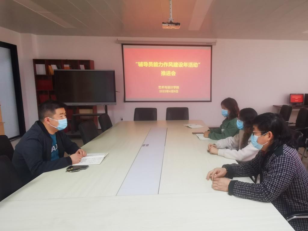 4月9日艺术与设计学院在会议室SY5514开展“辅导员能力作风建设年活动”推进会,学院党总支副书记赵巍和全体辅导员参加。