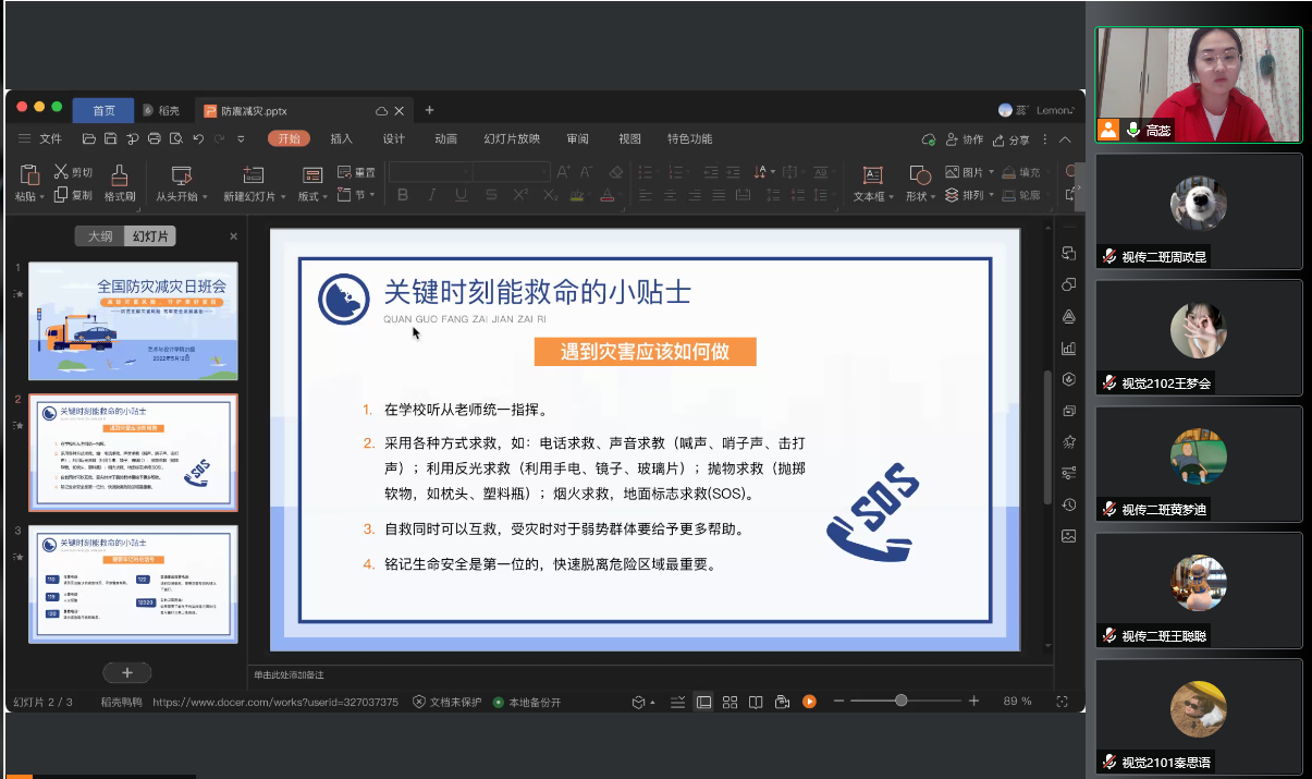 5月12日,艺术与设计学院通过线上线下相结合的方式开展全国防灾减灾日班会及“防震减灾”应急疏散演练活动。活动由辅导员高蕊主持,21级全体学生参与。