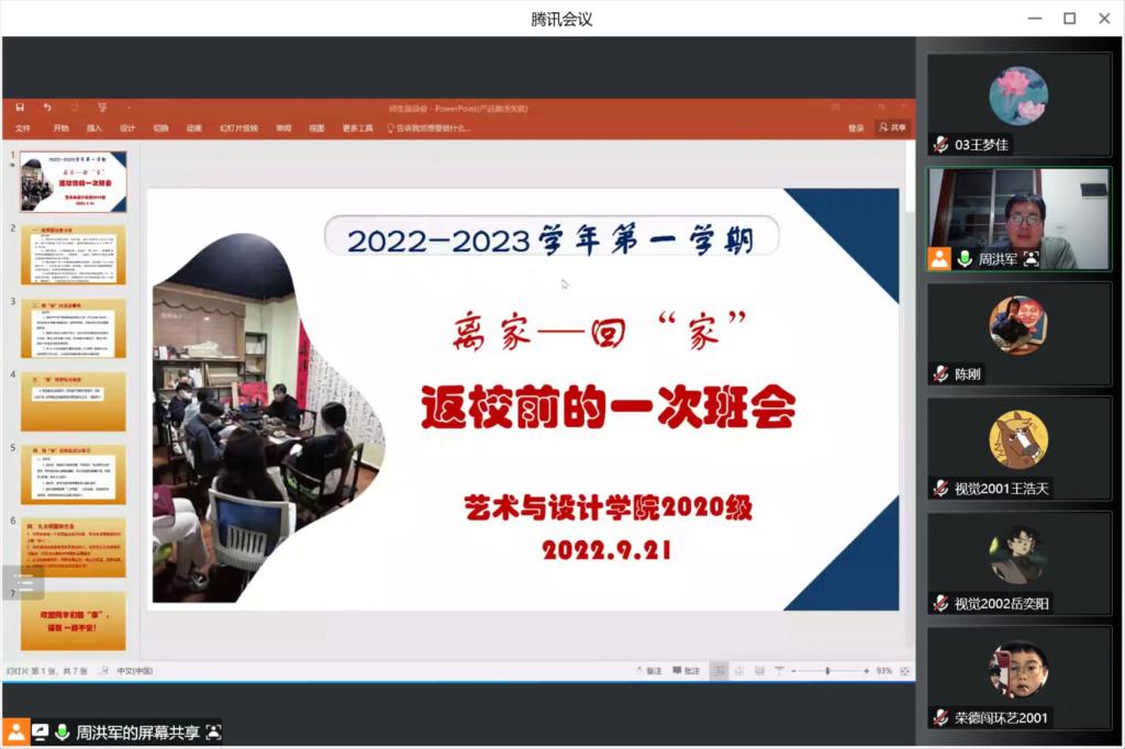 2022年9月21日晚,艺术与设计学院2020级辅导员组织学生召开返校前线上班会,教育同学们牢记安全知识,为顺利安全返校做好充分准备。