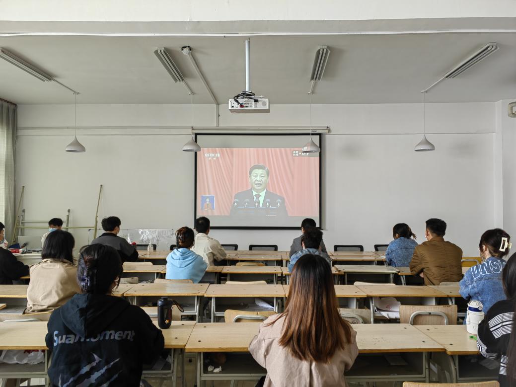 分团委负责人高蕊带领团学干部集中观看大会盛况