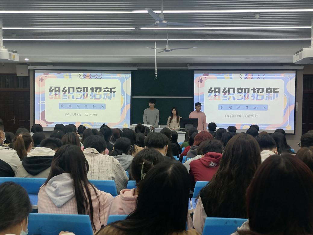10月9日晚上7点,艺术与设计学院分团委开展学院学生联合会招新活动。会议由学院学生会主席郭泓瑶主持,分团委负责人高蕊、学生会各部门负责人及2022级全体新生到场参与活动。