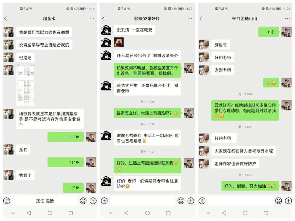 党总支副书记赵巍带领辅导员高蕊、陈奕帆在学校日夜值守,处理学生的各项事务,化身“大白”给学生做核酸,给学生发放口罩、药品,统计各类数据,关注学生们的每一项需求,尽全力保障学生们的安全。辅导员周洪军也采取线上方式第一时间了解学生情况,关心关爱每名学生。