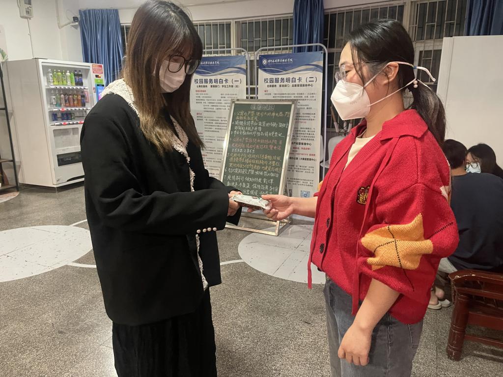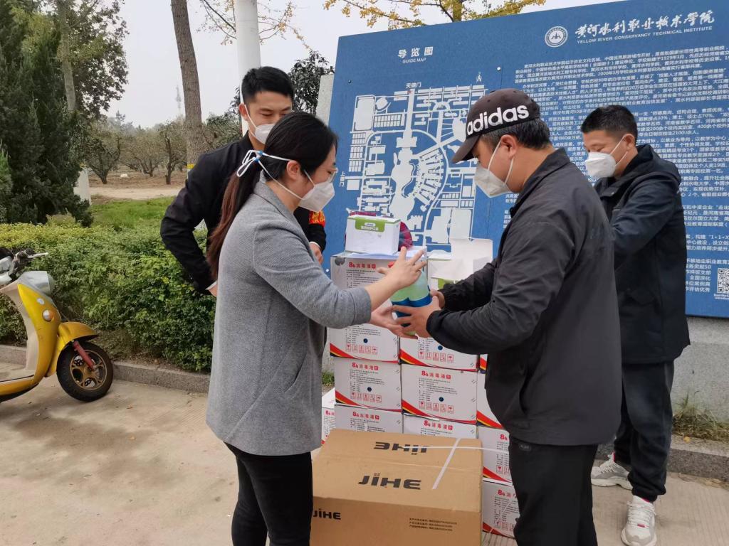 辅导员高蕊领取N95口罩和84消毒液并发放给学生