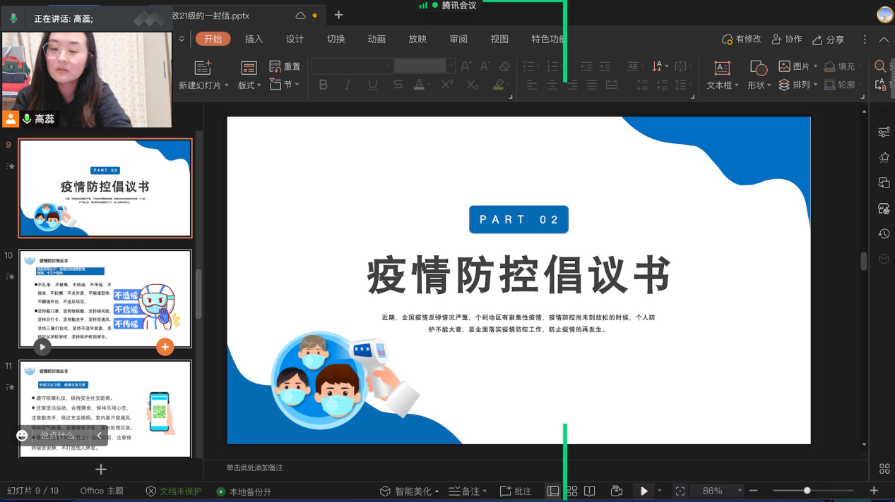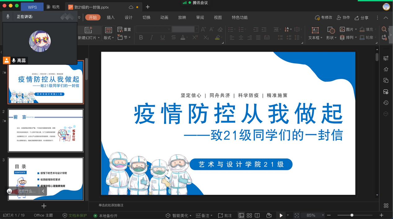 11月6日晚,艺术与设计学院2021级召开“疫情防控 从我做起——致21级的一封信”线上主题班会,辅导员高蕊主讲,21级全体学生参加。