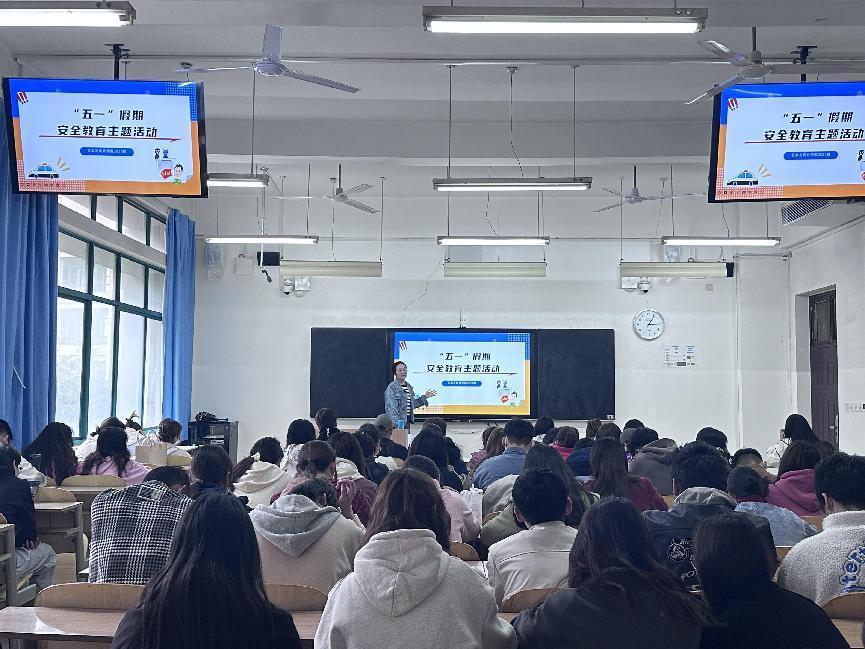 高蕊分别从防火、防盗、防溺水、交通安全、网络安全、饮食安全、心理健康安全、外出安全等方面向同学们讲述了五一假期需要注意的安全问题,要求同学们把安全牢牢记在心中,生命无彩排,提高防范意识,防患于未然。