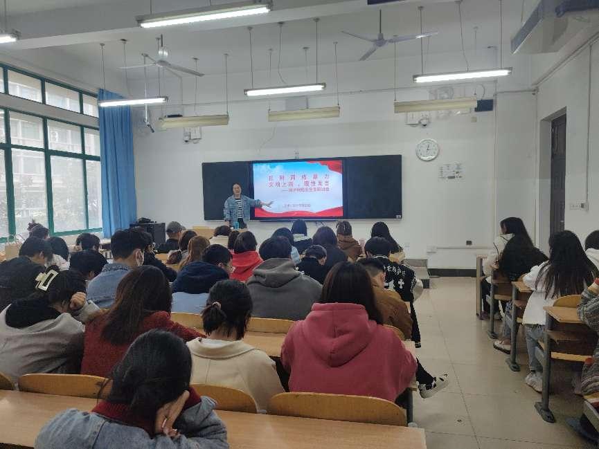 会上高蕊讲解相关案例,使同学们认识到了维护网络信息安全的重要性,明白网络不是法外之地,警示同学们在网络中规范自己的行为,不信谣、不传谣、理性发表言论。