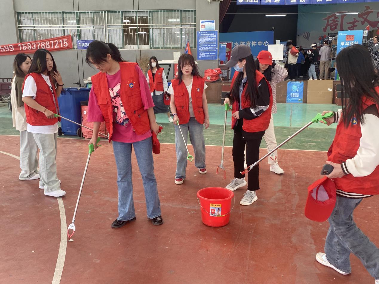 学生党员和入党积极分子一行十余人来到风雨球场,清理同学们取快递留下的垃圾及污渍,帮助大家整齐停放车辆,以实际行动践行“我为师生办实事”。 大家经过近2个小时的努力,最终使得风雨球场及周边环道路面(地面)整洁,花坛草坪间无垃圾,快递站附近车辆摆放整齐,为全体师生创造了一个干净舒适的生活环境。
