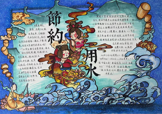 水是生命之源,节约用水是我们每个人应尽的责任。同学们利用专业特长,结合本次大赛主题绘制手抄报,了解现实生活中有关水的问题、知识,进一步认识到保护生态环境的重要性。