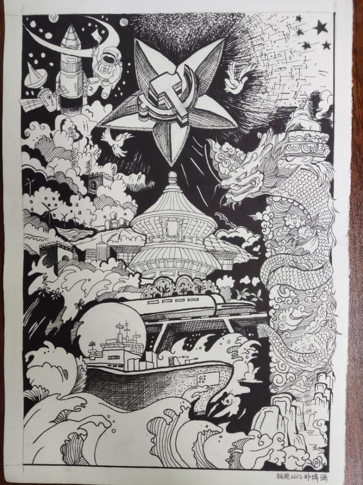 本次活动作品以书法、美术、海报设计及摄影等多种形式呈现,主要围绕着“学习二十大精神 弘扬红色文化”为主题进行创作,同学们积极参与,上交创作作品近百余幅。