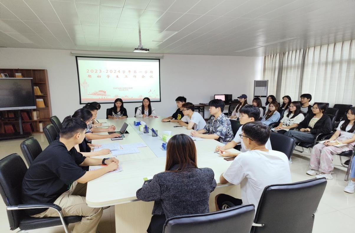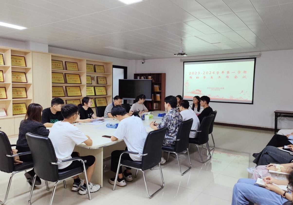 9月5日下午,艺术与设计学院召开2023-2024(1)期初学生干部工作会议,艺术与设计学院院长华雷、副院长李娅、分团委负责人高蕊及22级学生干部参加。