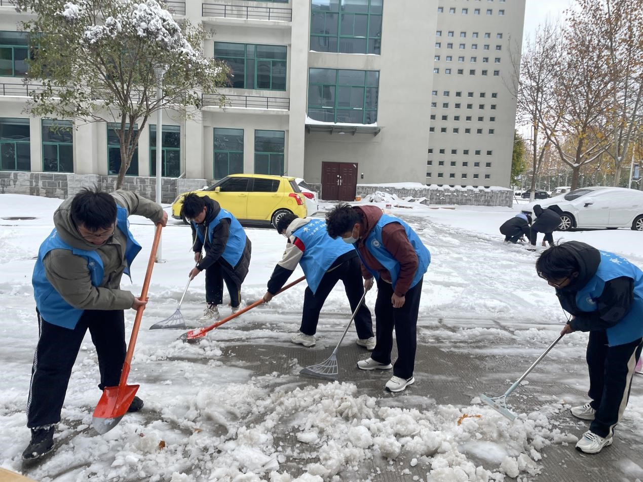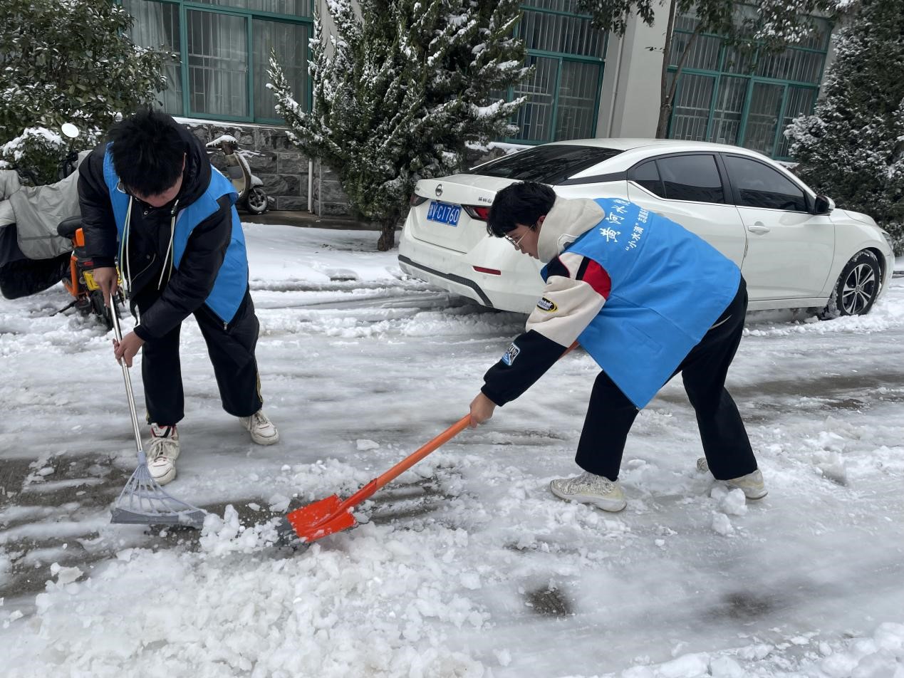 艺术学子迅速组织志愿力量,主动投身积雪清理活动中去,充分发挥模范带头作用,清理实训楼前通道积雪,用实际行动践行新时代志愿服务精神。