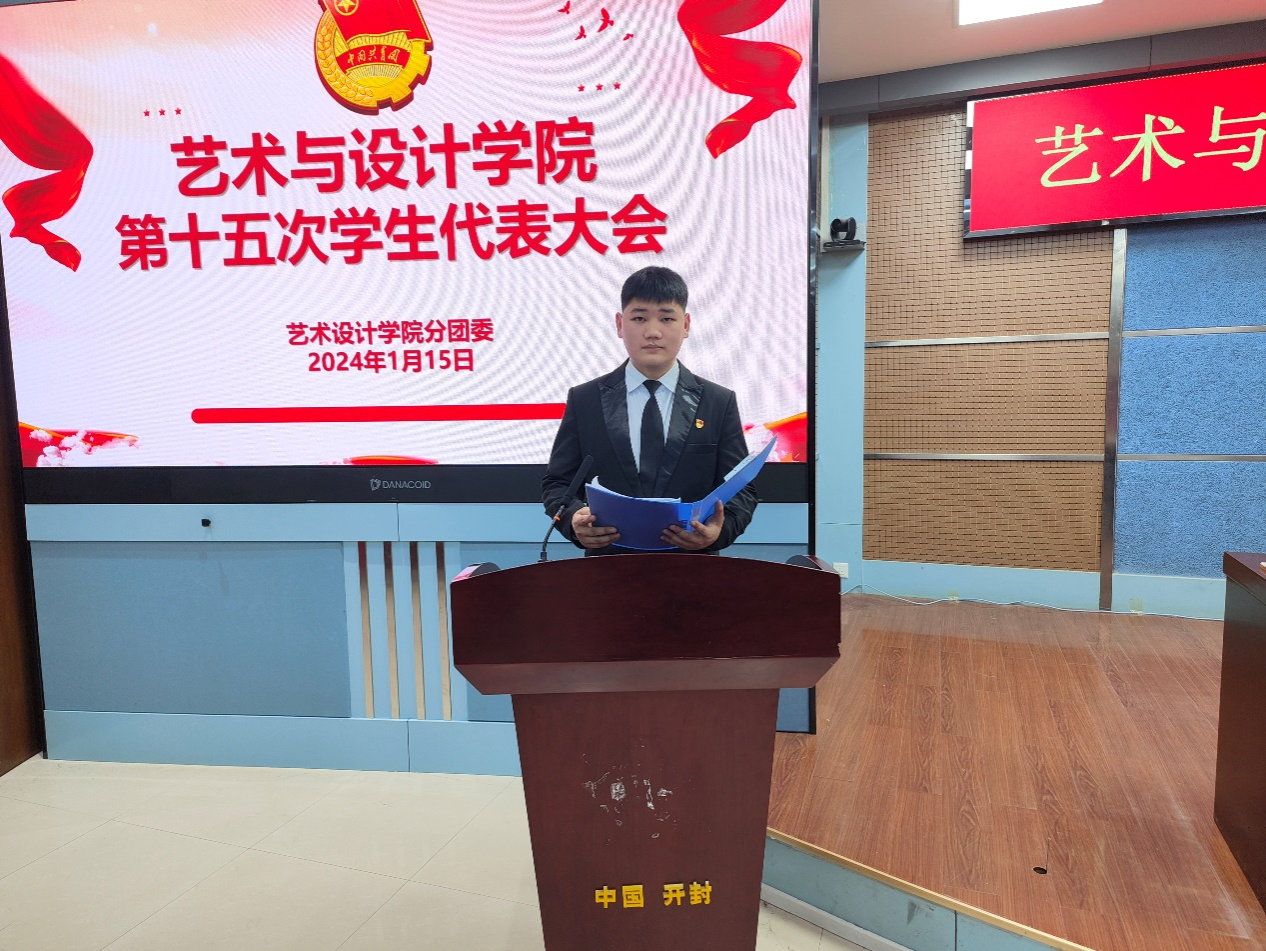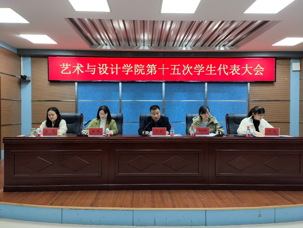 1月16日下午,艺术与设计学院第十五次学生代表大会在3号实训楼水利报告厅召开。校团委副书记姜璐、艺术与设计学院党总支书记华雷、院长鄢彬彬、艺术与设计学院副院长李娅、分团委负责人高蕊、辅导员陈奕帆和吴琛群以及学生代表参加了会议。