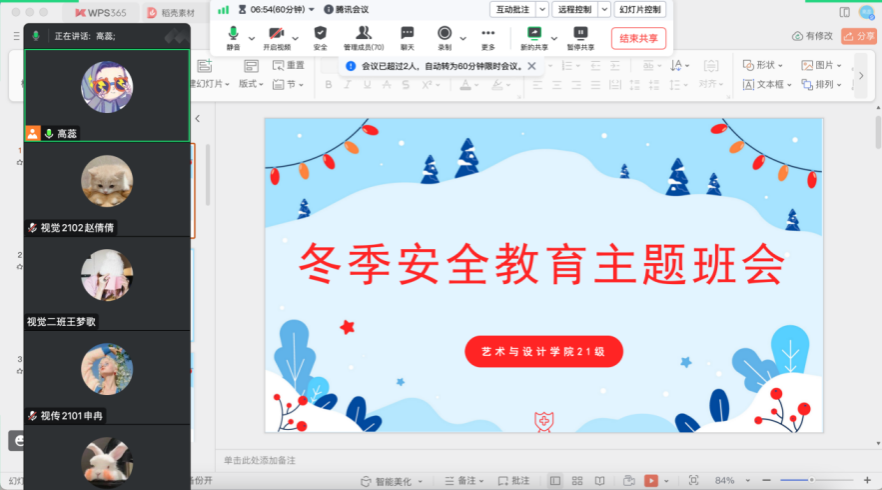 1月21日,艺术与设计学院组织21级全体学生召开冬季安全教育主题班会,辅导员高蕊主讲。
