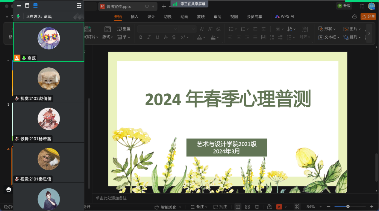 3月14日晚,艺术与设计学院2021级开展心理健康普测,辅导员高蕊带领2021级全体学生参加活动。本次心理普测遵循保密原则,学生们的信息将被严格保密。