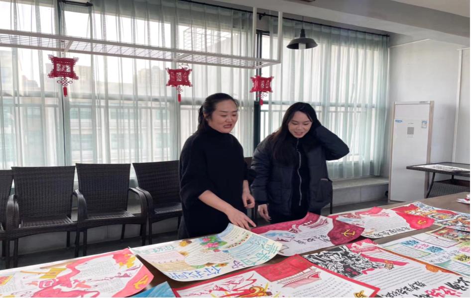 分团委负责人高蕊及学生干部进行海报评选