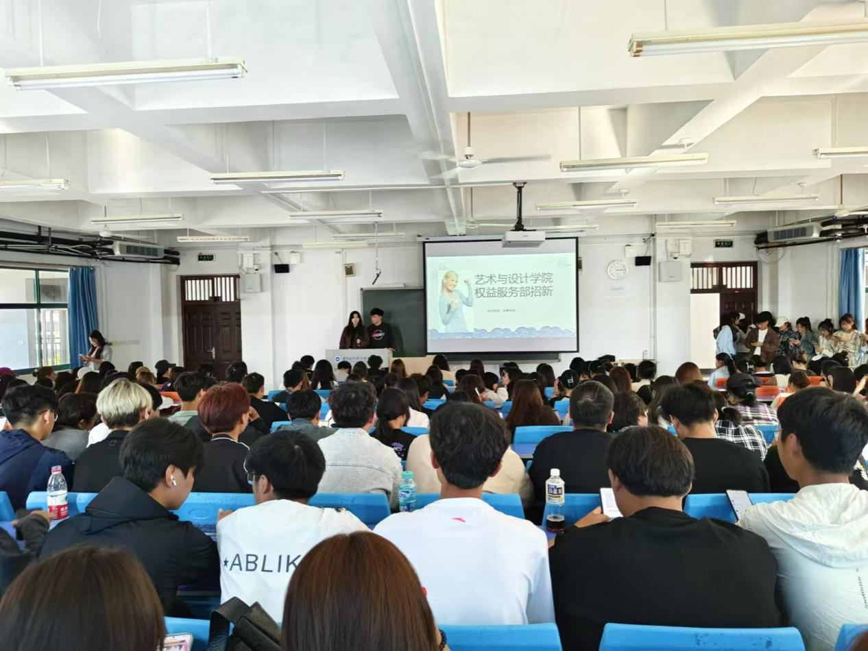 9月24下午,艺术与设计学院在JX2402开展2024年学生联合会招新活动,学院分团委负责人高蕊,学生干部和2024级全体新生参与。