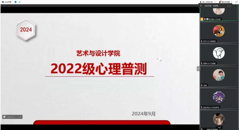 为全面了解学生的心理健康状况,强化精准摸排和分类指导,做好各类心理问题的早期干预和心理危机预防,艺术与设计学院开展2022级心理健康普测,辅导员陈奕帆主讲,2022级全体学生参加。
